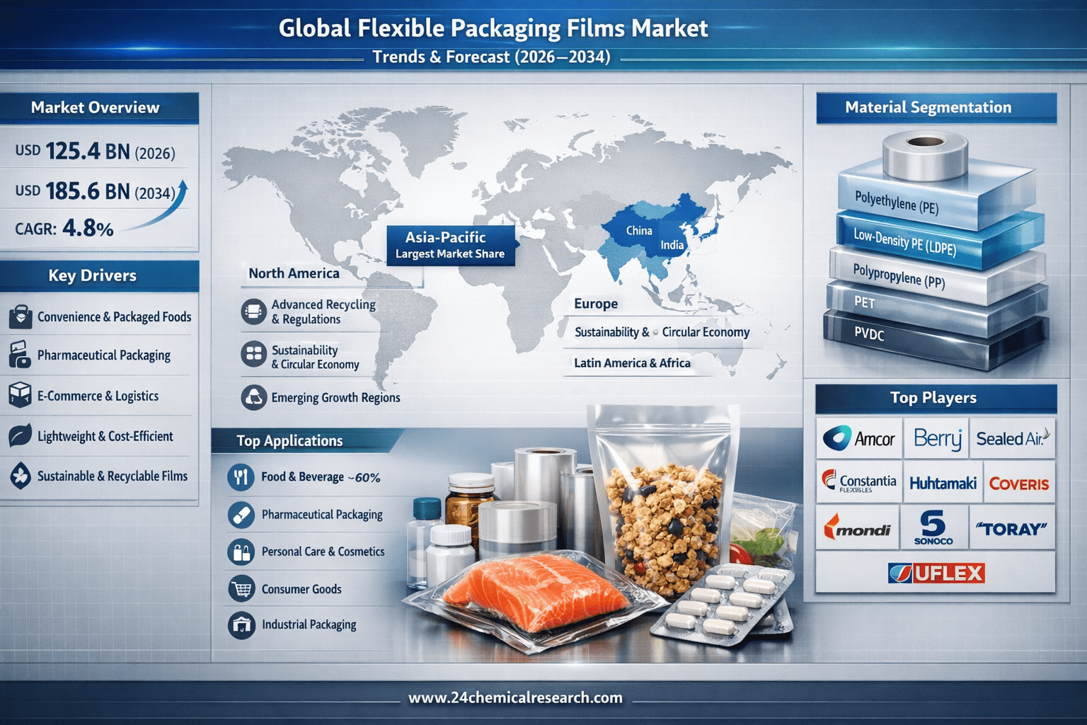 What Is Driving Global Flexible Packaging Films Market from USD 125.4 Billion in 2026 to USD 185.6 Billion by 2034?