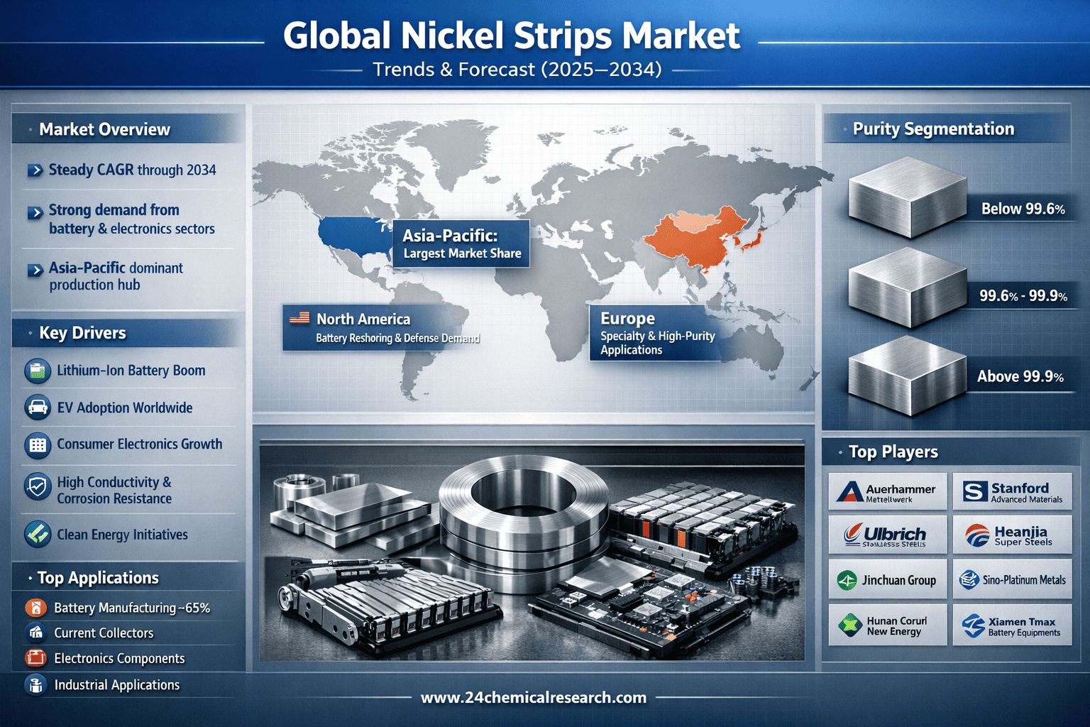 This comprehensive report analyzes the global nickel strips market across all key dimensions, featuring detailed analysis of: