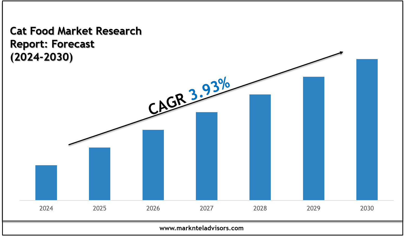 The Global Cat Food Market size is estimated to grow at a CAGR of around 3.93% during the forecast period, i.e., 2024-30.