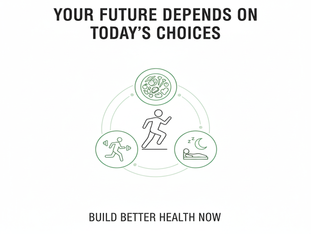 Your future depends on today’s decisions. By focusing on proper nutrition, regular exercise, quality sleep, stress management, and preventive care, you build a foundation for lifelong health.