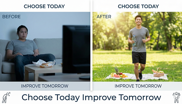 Daily habits directly affect long term health. Small positive actions today can reduce the risk of chronic diseases and improve overall wellbeing in the future.