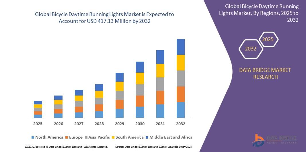 Global bicycle daytime running lights market size was valued at USD 203.3 million in 2024 and is projected to reach USD 417.13 million by 2032, with a CAGR of 9.4% during the forecast period of 2025 to 2032.