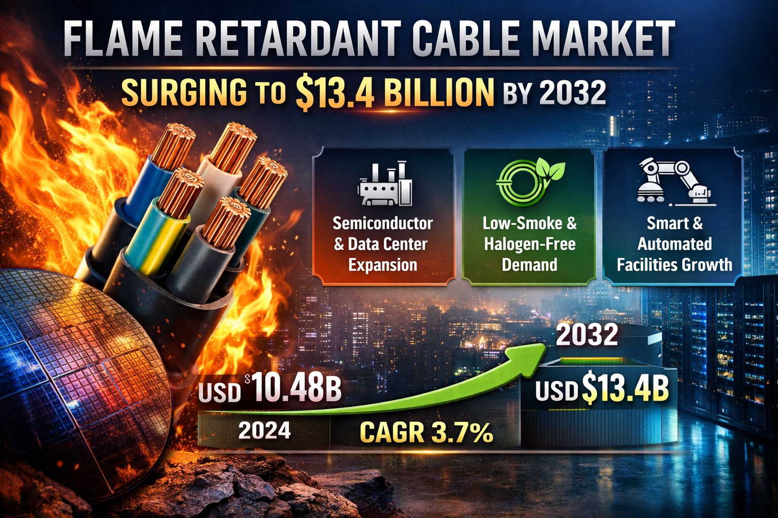 Flame Retardant Cable Market Set to Reach $13.4 Billion by 2032 Amid Semiconductor & Infrastructure Boom