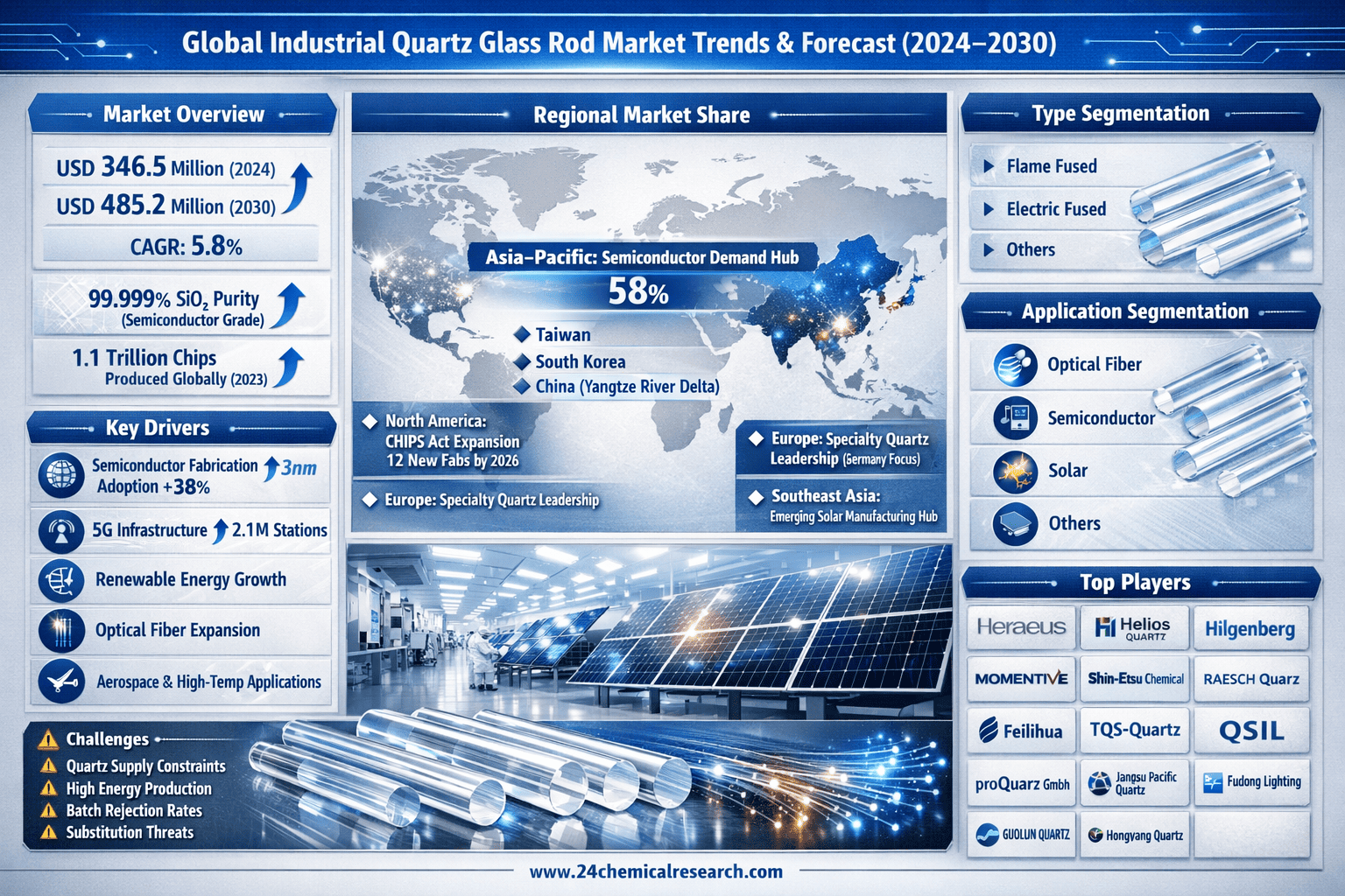 According to 24Chemical Research, Global Industrial Quartz Glass Rod market has demonstrated robust expansion, with its valuation reaching USD 346.5 million in 2024. According to recent analyses, the market is projected to grow at a CAGR of 5.8%, reaching approximately USD 485.2 million by 2030. This sustained growth stems from increasing semiconductor fabrication demands and the material's unmatched thermal stability in high-tech applications.