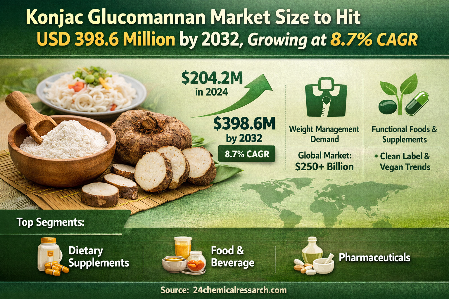 Konjac Glucomannan Market Size to Hit USD 398.6 Million by 2032, Growing at 8.7% CAGR