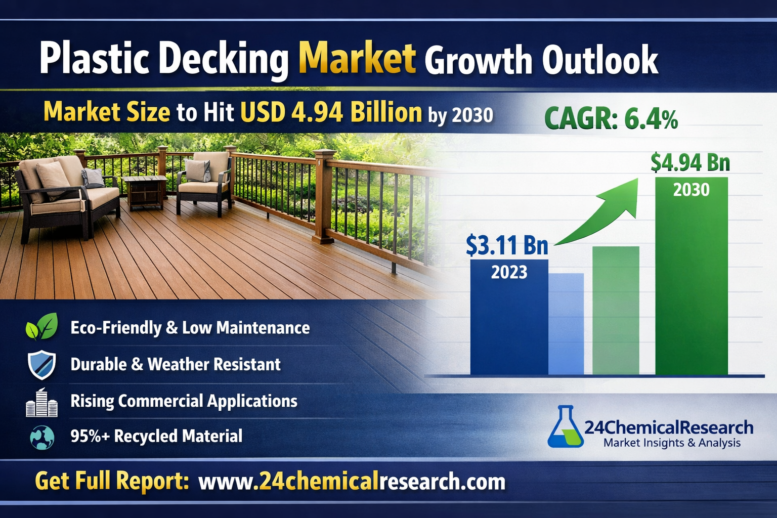 Plastic Decking Market Size to Hit USD 4.94 Billion by 2030 Driven by Rising Demand for Durable Outdoor Materials