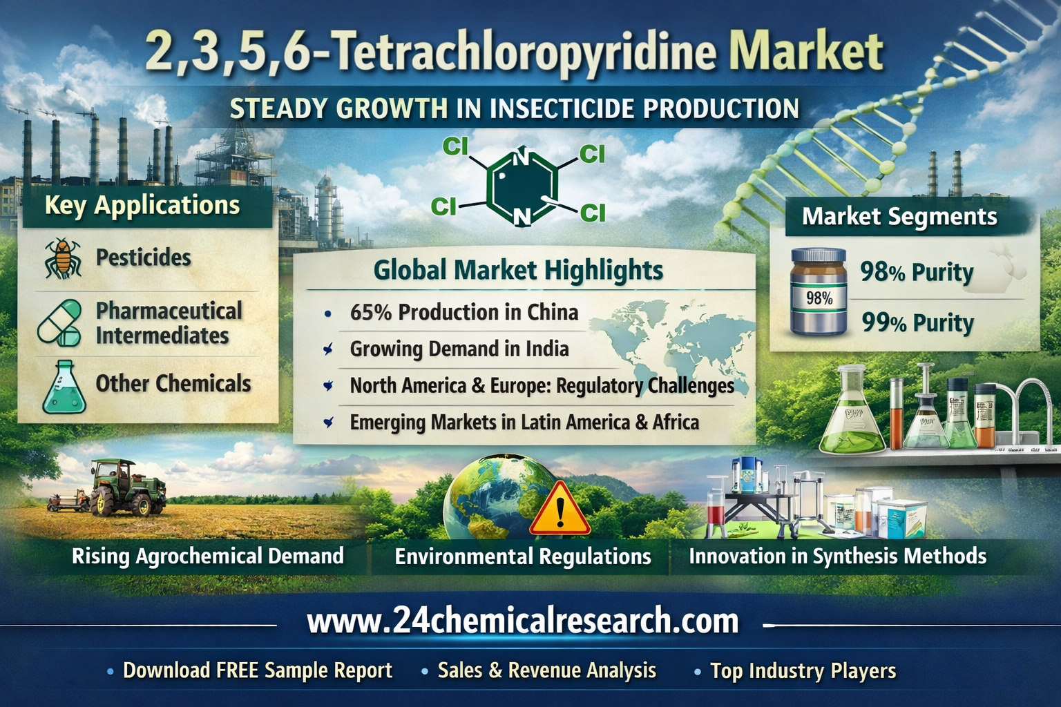 This report presents a comprehensive analysis of the global and regional markets for 2,3,5,6-tetrachloropyridine, covering the period from 2024 to 2032. It includes detailed insights into the current market status and outlook across various regions and countries, with specific focus on: