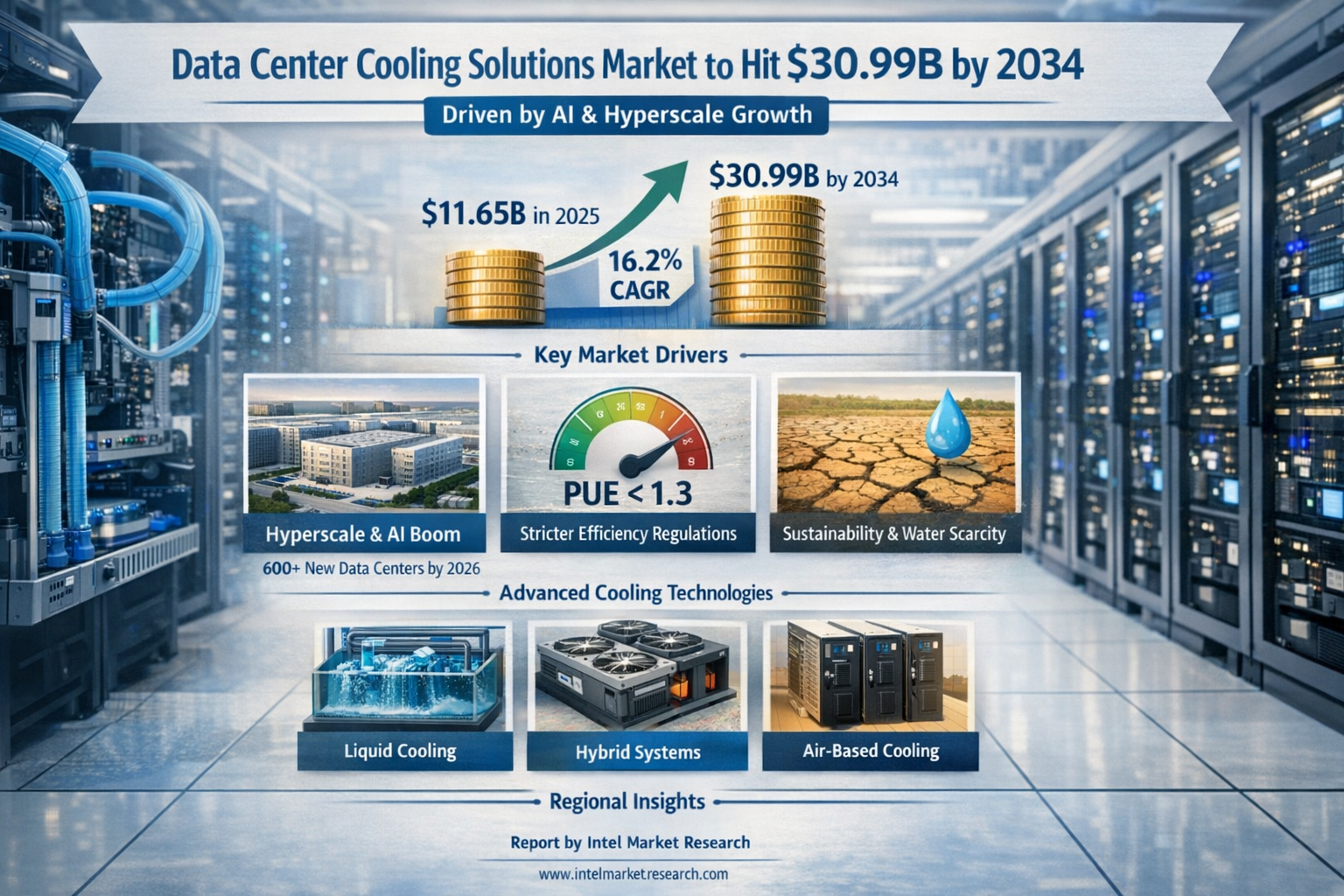 According to a new report from Intel Market Research, the global Data Center Cooling Solutions market was valued at USD 11.65 billion in 2025 and is projected to reach USD 30.99 billion by 2034, growing at a strong CAGR of 16.2% during the forecast period (2026-2034). This growth is driven by increasing demand for high-density computing infrastructure, the proliferation of AI workloads, and stringent sustainability requirements for modern data centers.