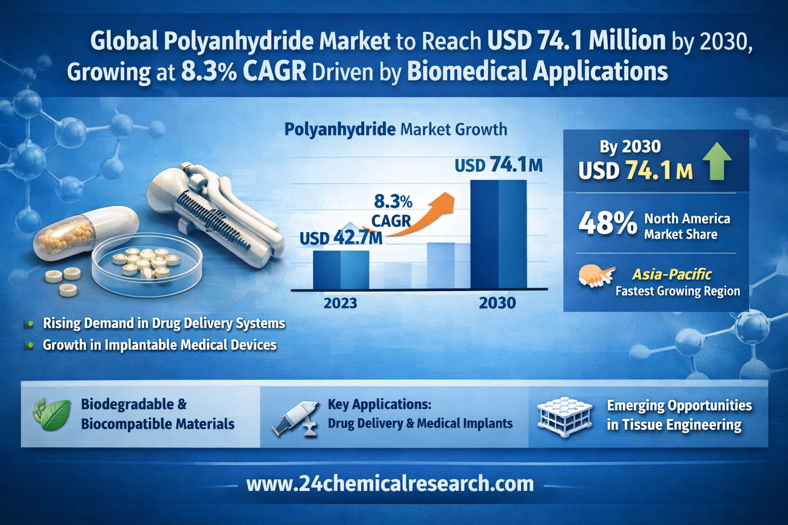 Global Polyanhydride Market to Reach USD 74.1 Million by 2030, Growing at 8.3% CAGR Driven by Biomedical Applications