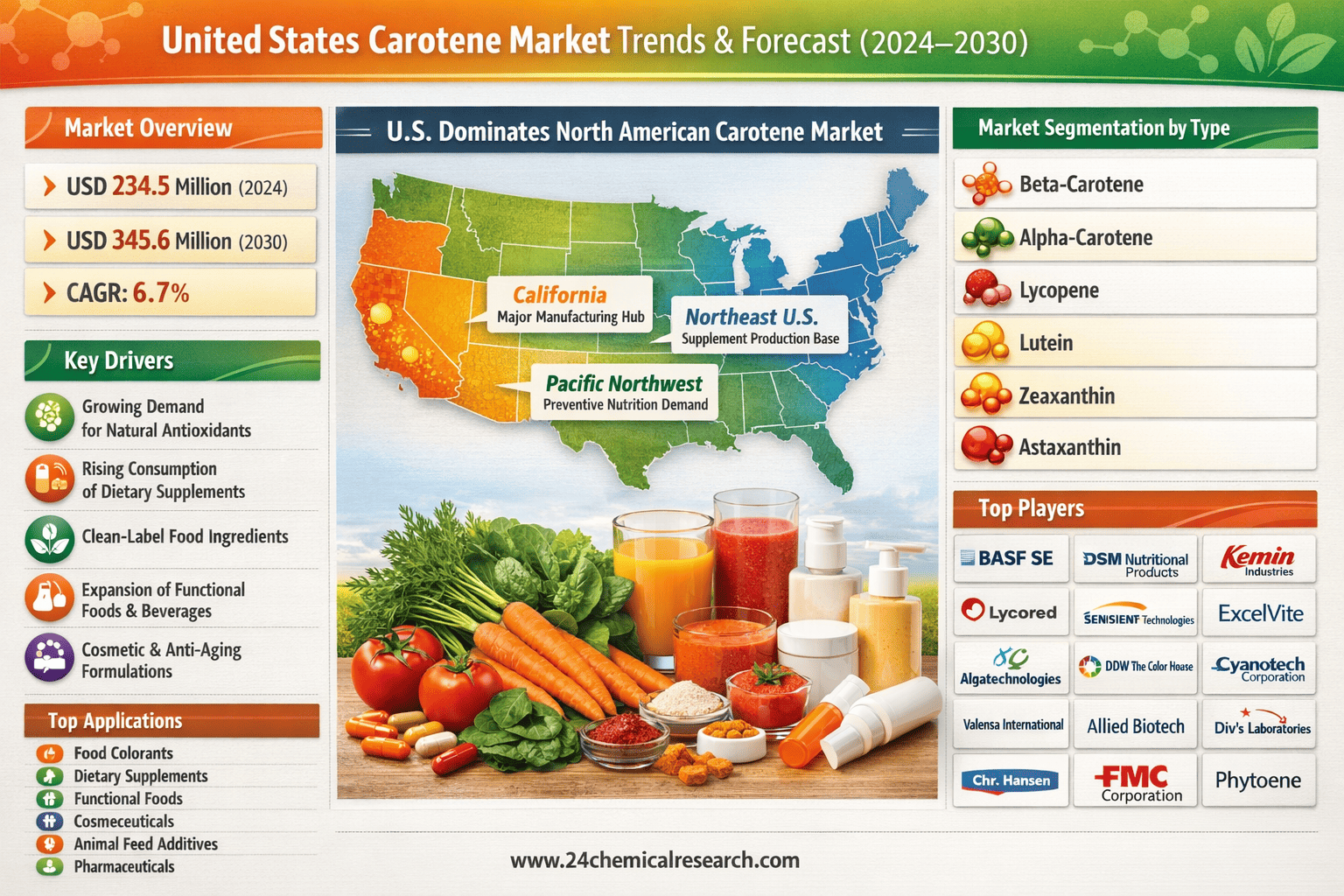 According to 24Chemical Research, United States Carotene Market Shows Steady Growth, Projected to Reach USD 345.6 Million by 2030