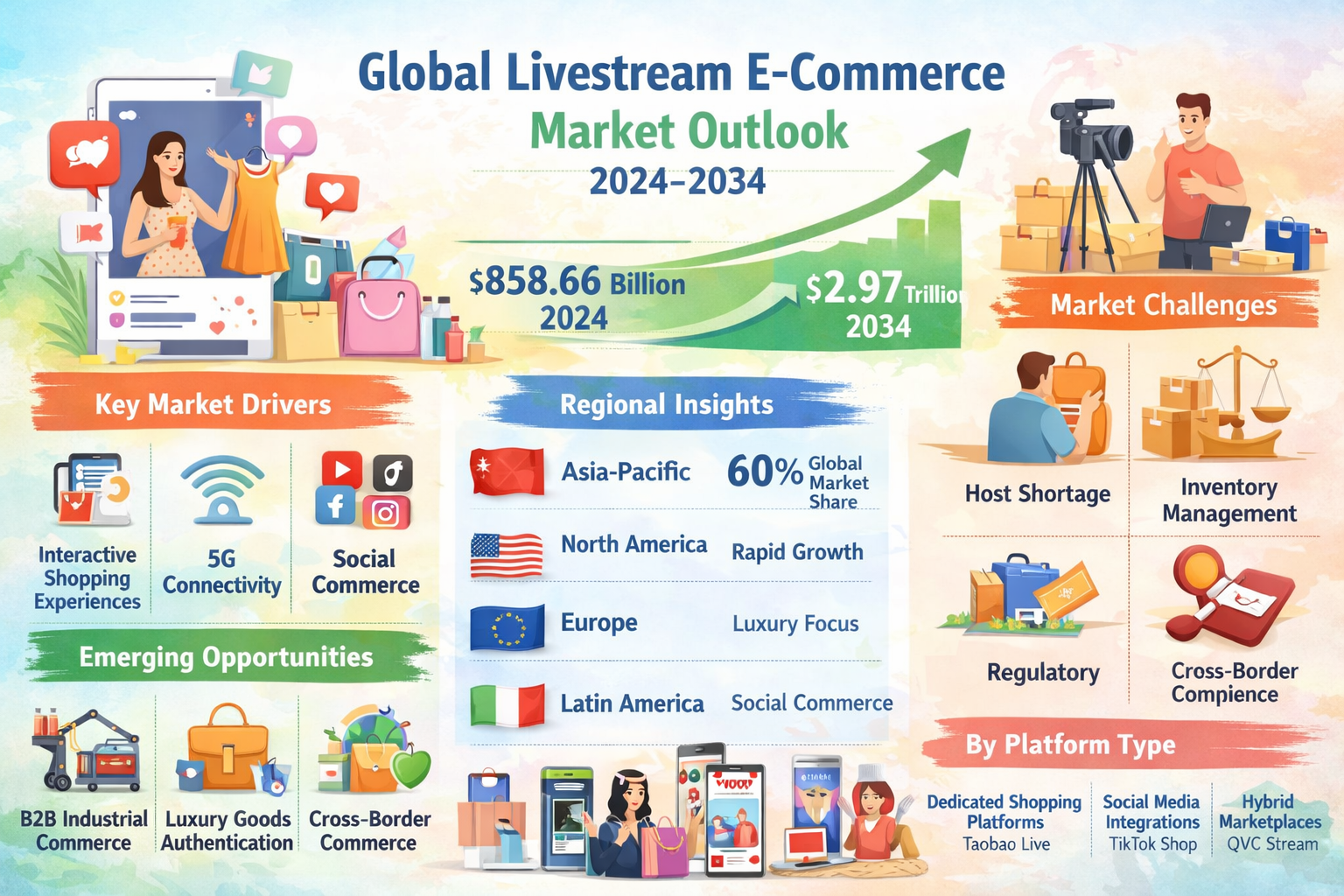 • Regulatory Uncertainty - As live selling gains traction, governments globally are developing new compliance frameworks for product claims, return policies, and data privacy in streaming environments.