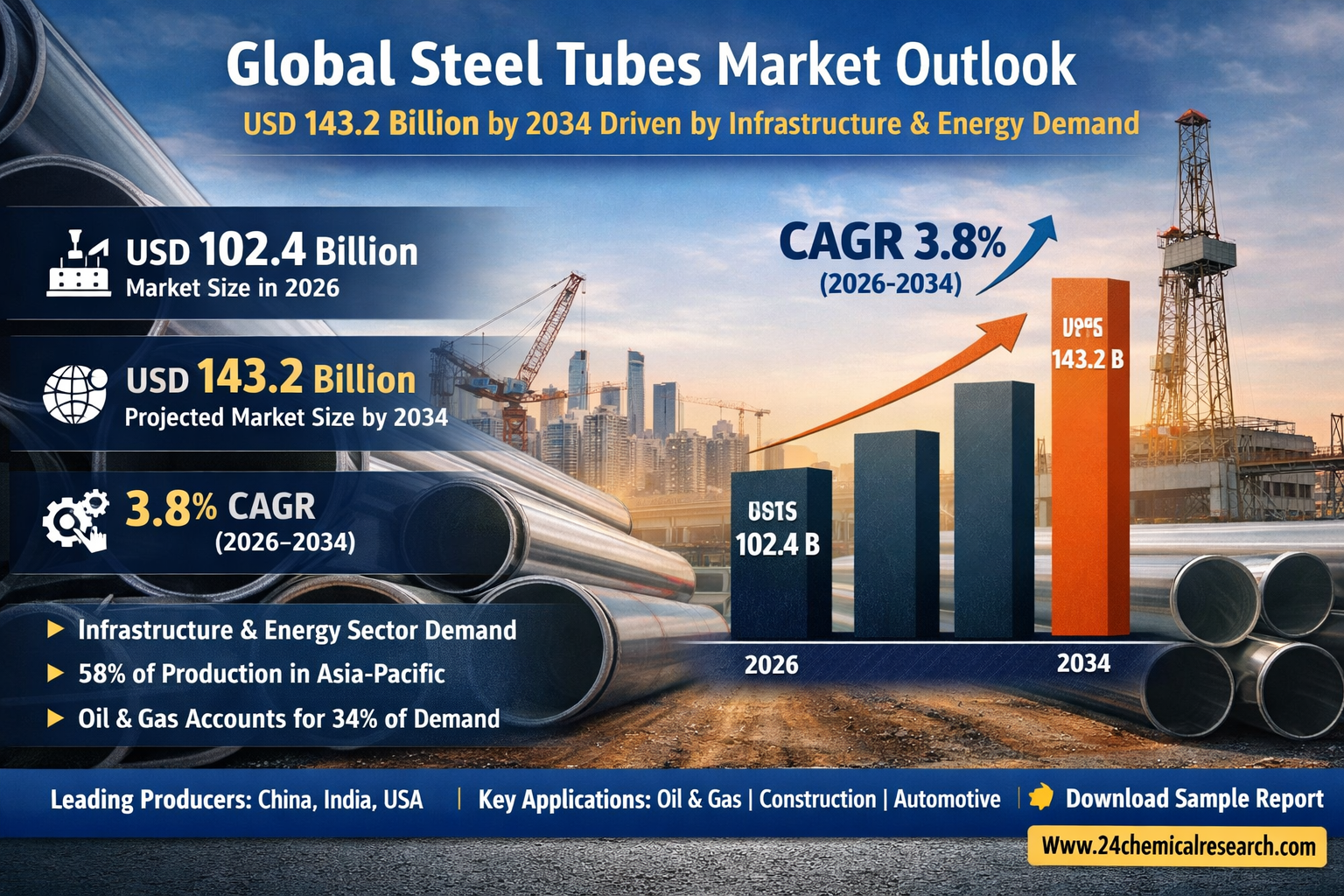 Global Steel Tubes Market to Reach USD 143.2 Billion by 2034, Growing at 3.8% CAGR Driven by Infrastructure and Energy Sector Demand