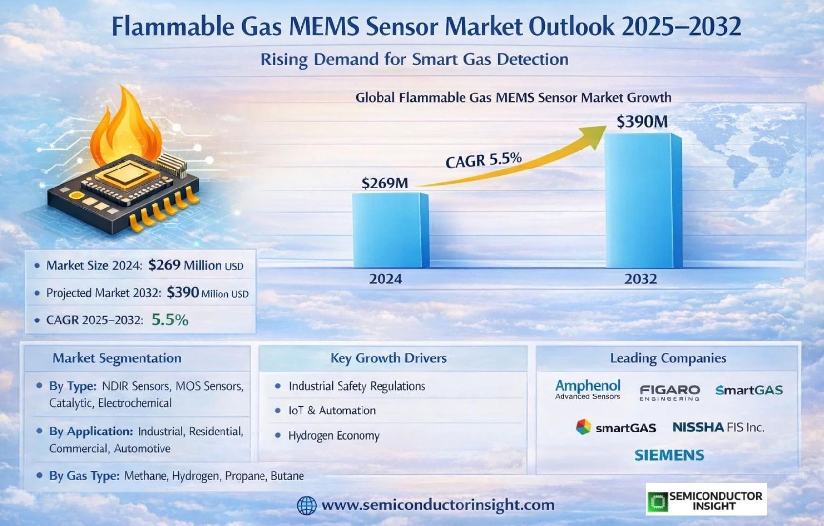 Global Flammable Gas MEMS Sensor Market, valued at US$ 269 million in 2024, is poised for steady growth, projected to reach US$ 390 million by 2032. This expansion, representing a compound annual growth rate (CAGR) of 5.5%, is detailed in a comprehensive new report published by Semiconductor Insight. The study underscores the critical role these miniaturized, high-precision sensors play in enhancing safety across industrial, residential, and commercial environments by enabling early and reliable detection of hazardous gases.