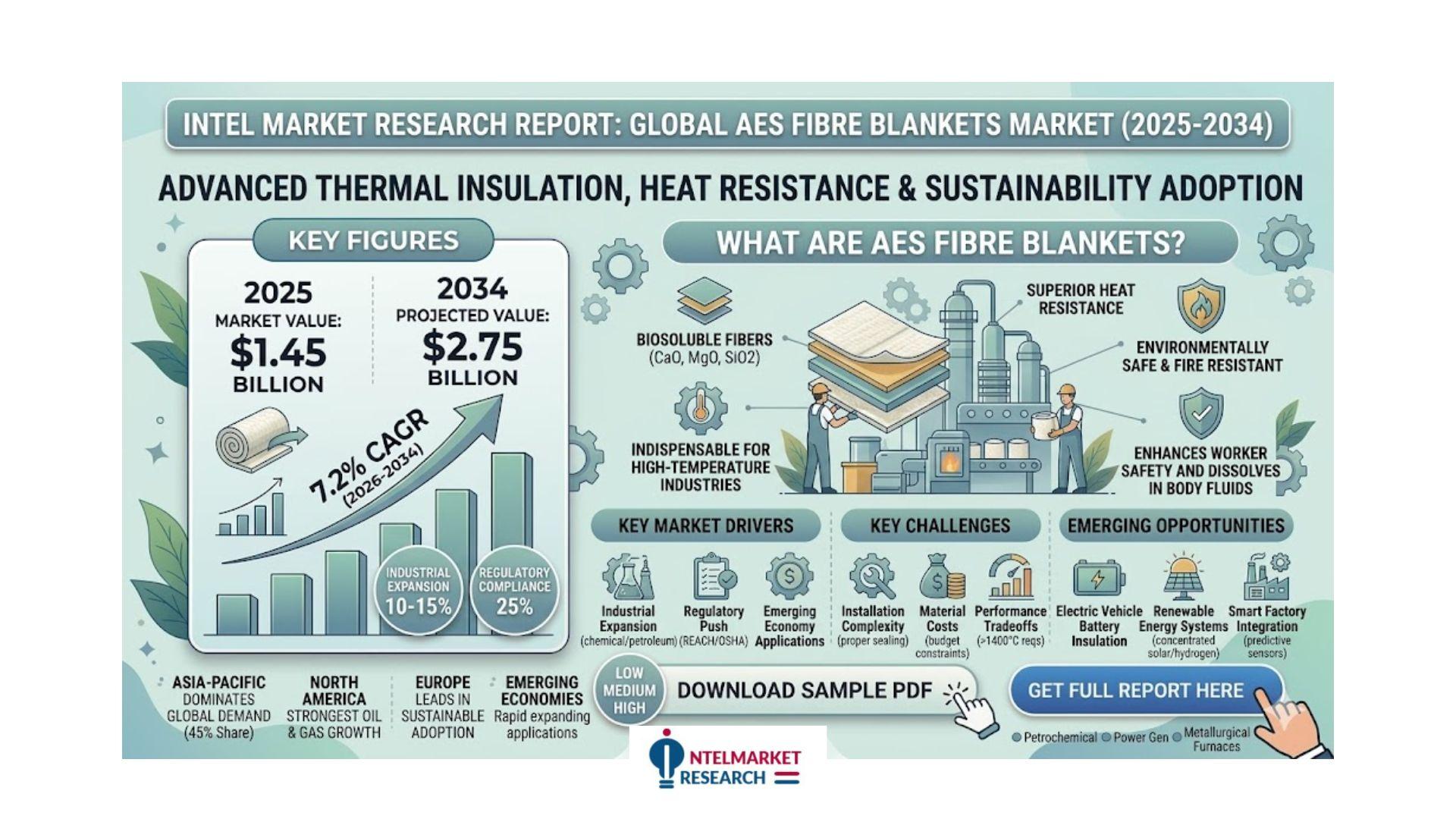 According to a new report from Intel Market Research, the global AES Fibre Blankets market was valued at USD 1.45 billion in 2025 and is projected to reach USD 2.75 billion by 2034, growing at a CAGR of 7.2% during the forecast period (2026-2034). This growth is driven by increasing demand from high-temperature industries and expanding applications in emerging economies.