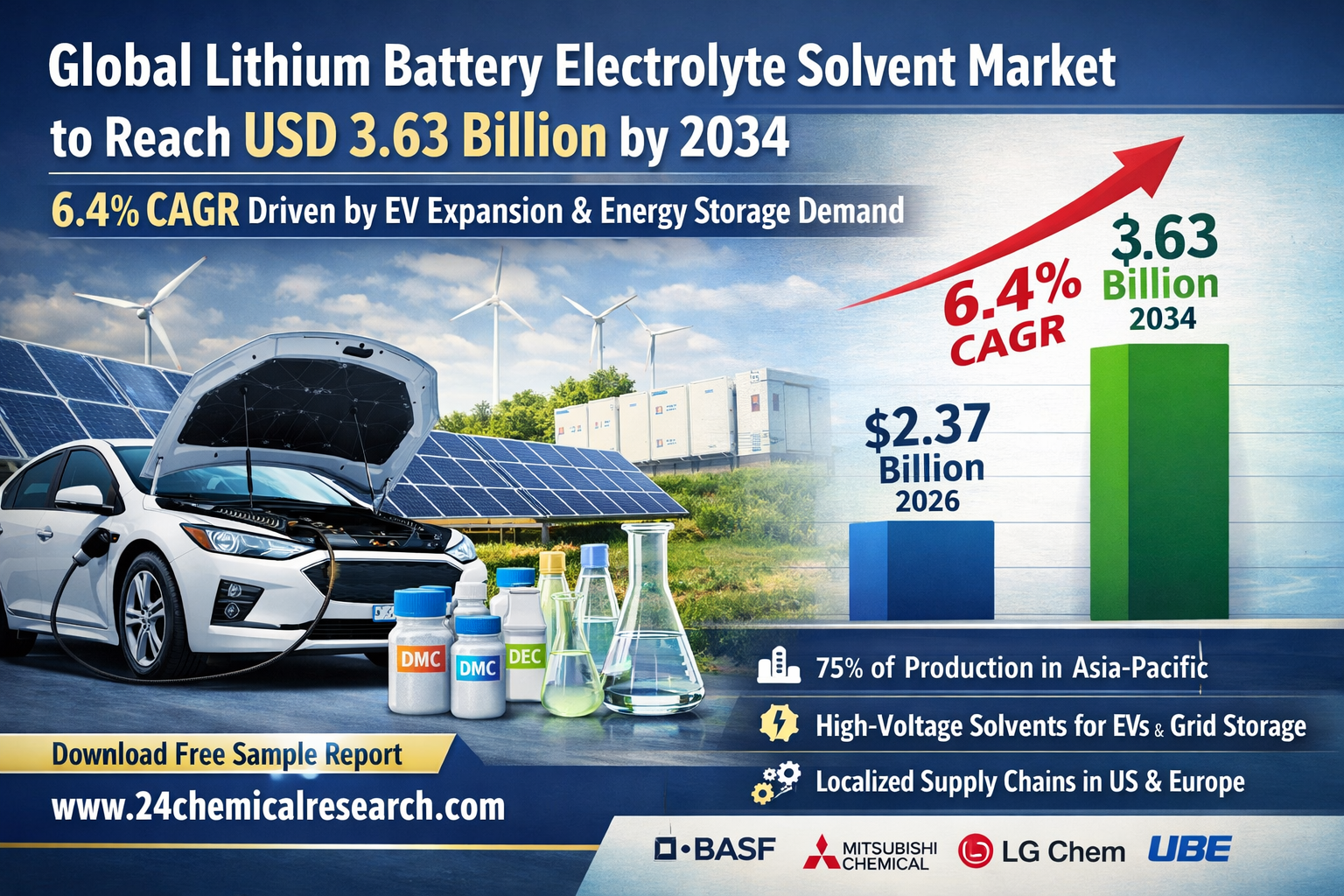 Global Lithium Battery Electrolyte Solvent market reached USD 2.37 billion in 2026, with projections indicating robust expansion to USD 3.63 billion by 2034, representing a 6.4% CAGR through the decade. This sustained growth trajectory reflects deepening electrification trends across automotive, consumer electronics, and renewable energy storage applications. As battery chemistries evolve to meet higher energy density requirements, electrolyte solvents remain the critical enabler for next-generation lithium-ion systems.