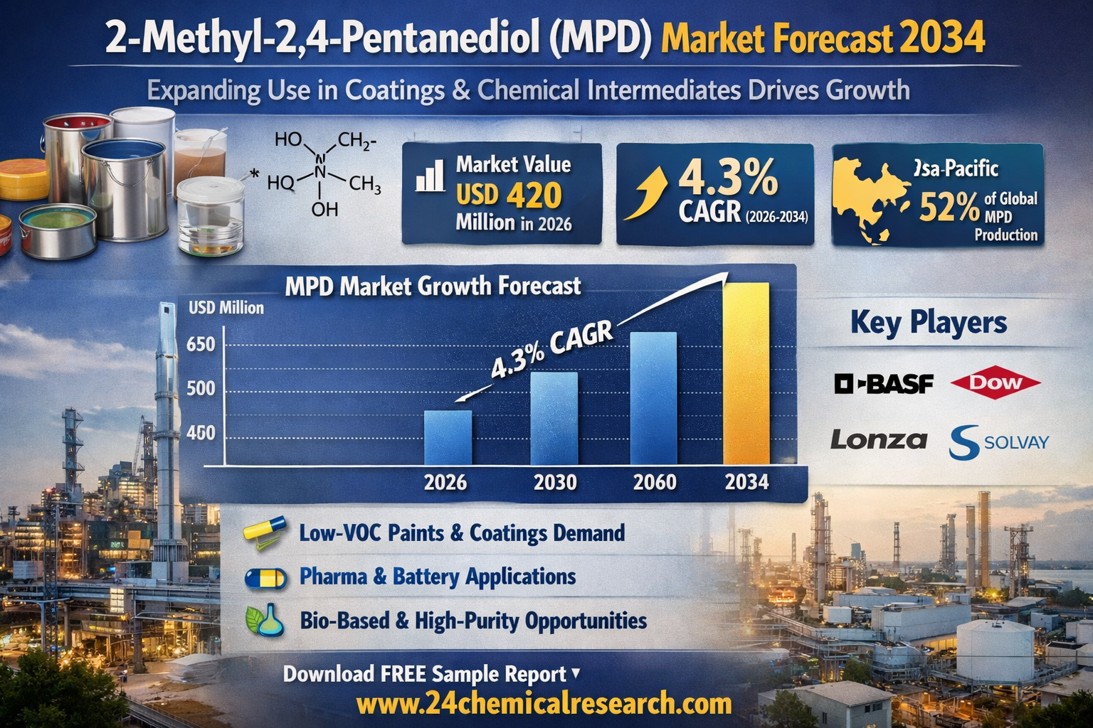 2-Methyl-2,4-Pentanediol (MPD) Market Forecast 2034: Expanding Use in Coatings and Chemical Intermediates Drives Growth