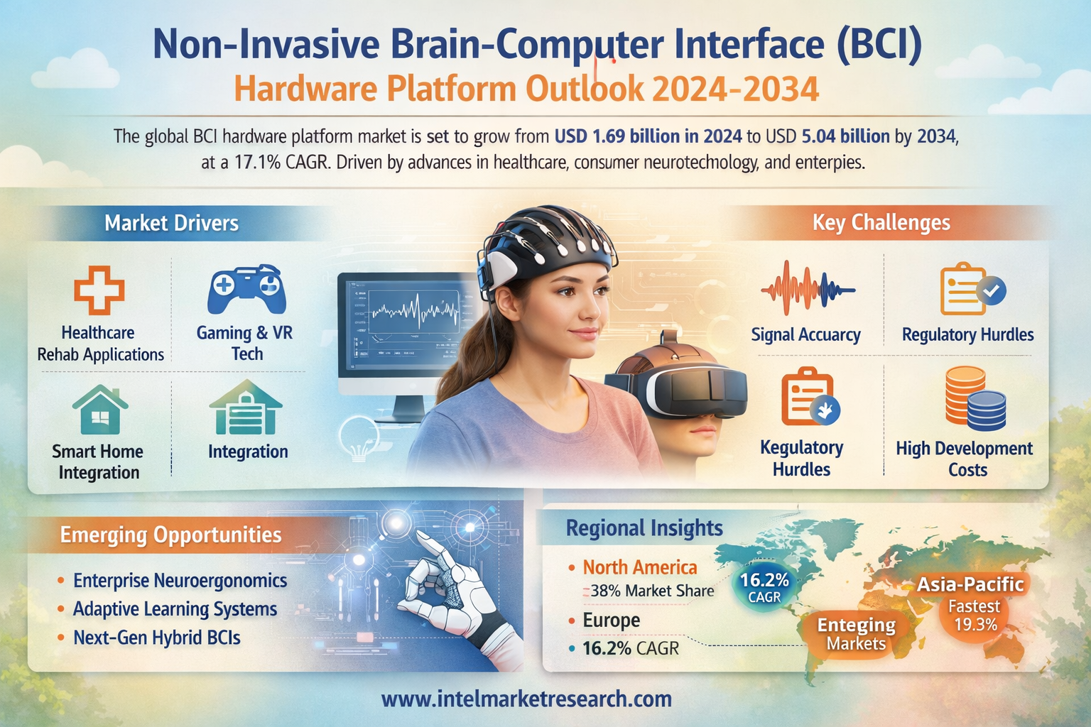 According to a new report from Intel Market Research, the global Non-invasive Brain-computer Interface (BCI) Hardware Platform market was valued at USD 1,688 million in 2024 and is projected to reach USD 5,039 million by 2034, growing at a remarkable CAGR of 17.1% during the forecast period (2025-2034). This significant growth trajectory reflects the accelerating adoption of neurotechnology across healthcare, consumer electronics, and enterprise applications worldwide.
