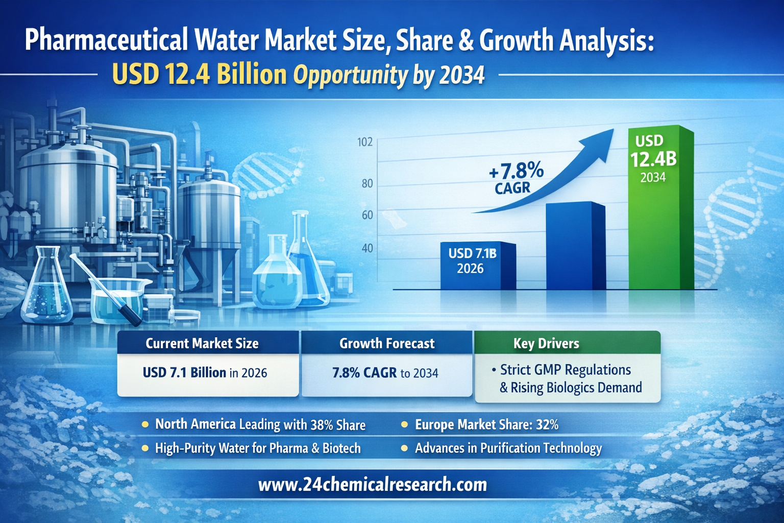 Pharmaceutical Water Market Size, Share & Growth Analysis: USD 12.4 Billion Opportunity by 2034