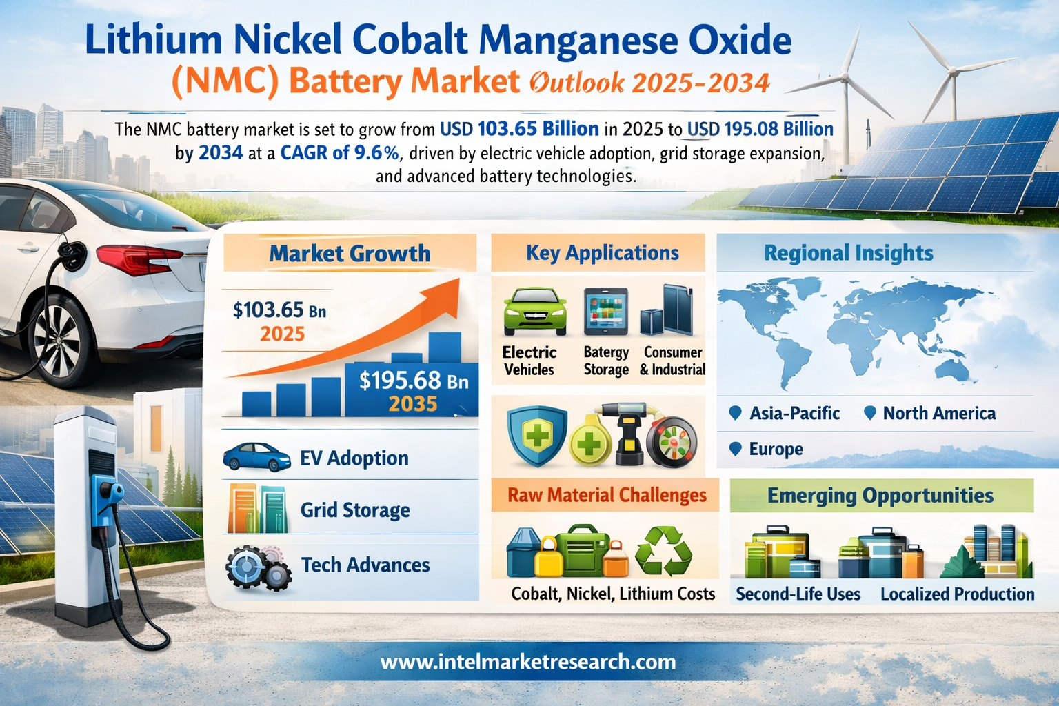 According to a new report from Intel Market Research, the global Lithium Nickel Cobalt Manganese Oxide (NMC) Battery market was valued at USD 103.65 billion in 2025 and is projected to reach USD 195.08 billion by 2034, growing at a CAGR of 9.6% during the forecast period (2026-2034). This growth is fueled by accelerating electric vehicle adoption, renewable energy storage demands, and technological advancements in battery chemistry.