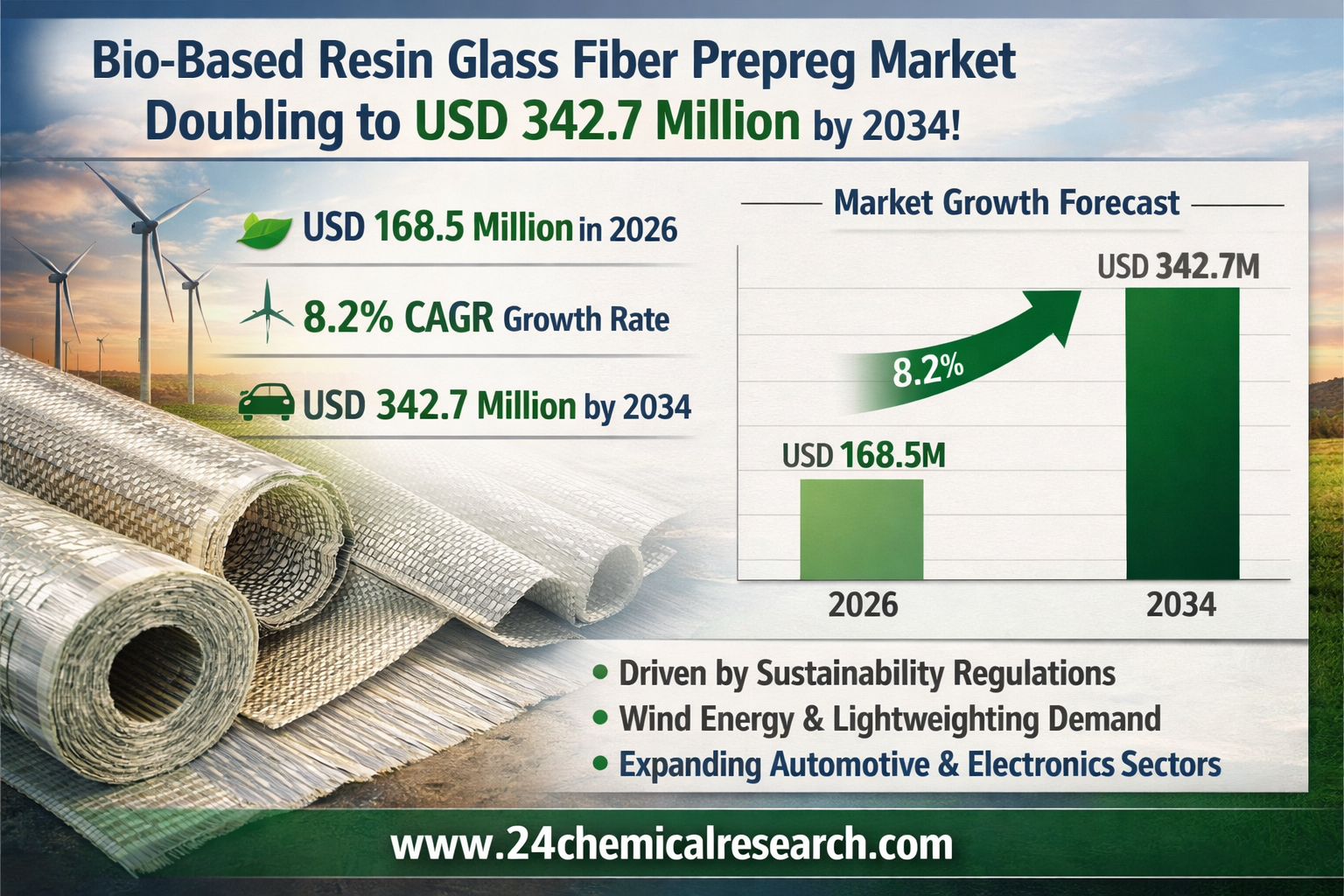 Bio-Based Resin Glass Fiber Prepreg Market Expands Rapidly, Doubling to USD 342.7M by 2034