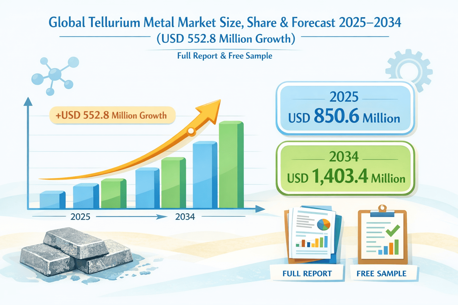 Global Tellurium Metal Market Size, Share & Forecast 2025–2034 (USD 552.8 Million Growth) | Full Report & Free Sample