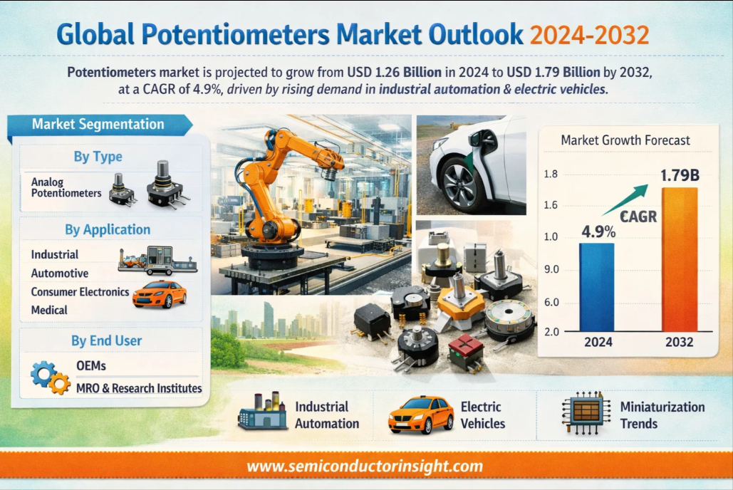 Global Potentiometers Market, valued at USD 1.26 billion in 2024, is on a steady growth path, projected to reach USD 1.79 billion by 2032, exhibiting a CAGR of 4.9% during the forecast period, as detailed in a comprehensive new report published by Semiconductor Insight. The study underscores the enduring importance of these versatile electronic components in a multitude of applications, from simple volume controls to complex industrial automation systems.