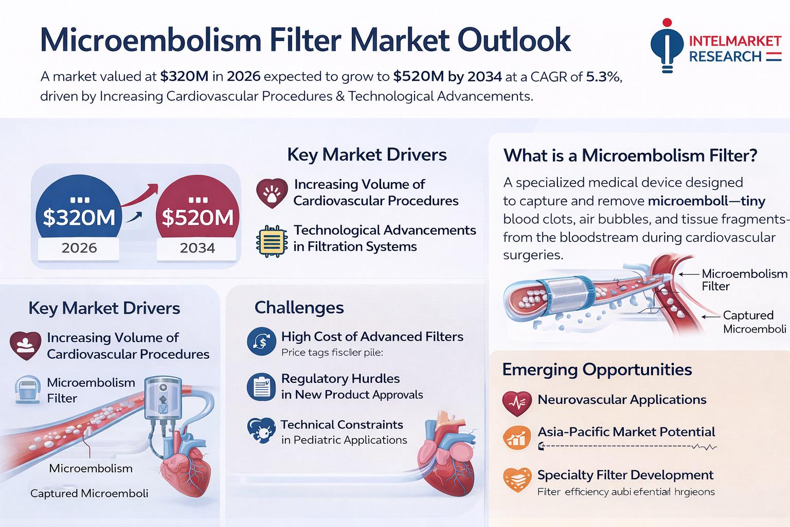 According to a new report from Intel Market Research, the global Microembolism Filter market was valued at USD 320 million in 2025 and is projected to reach USD 520 million by 2034, growing at a steady CAGR of 5.3% during the forecast period (2026–2034). This expansion is driven by increasing cardiovascular procedures, rising surgical safety awareness, and ongoing technological advancements in embolic protection devices.