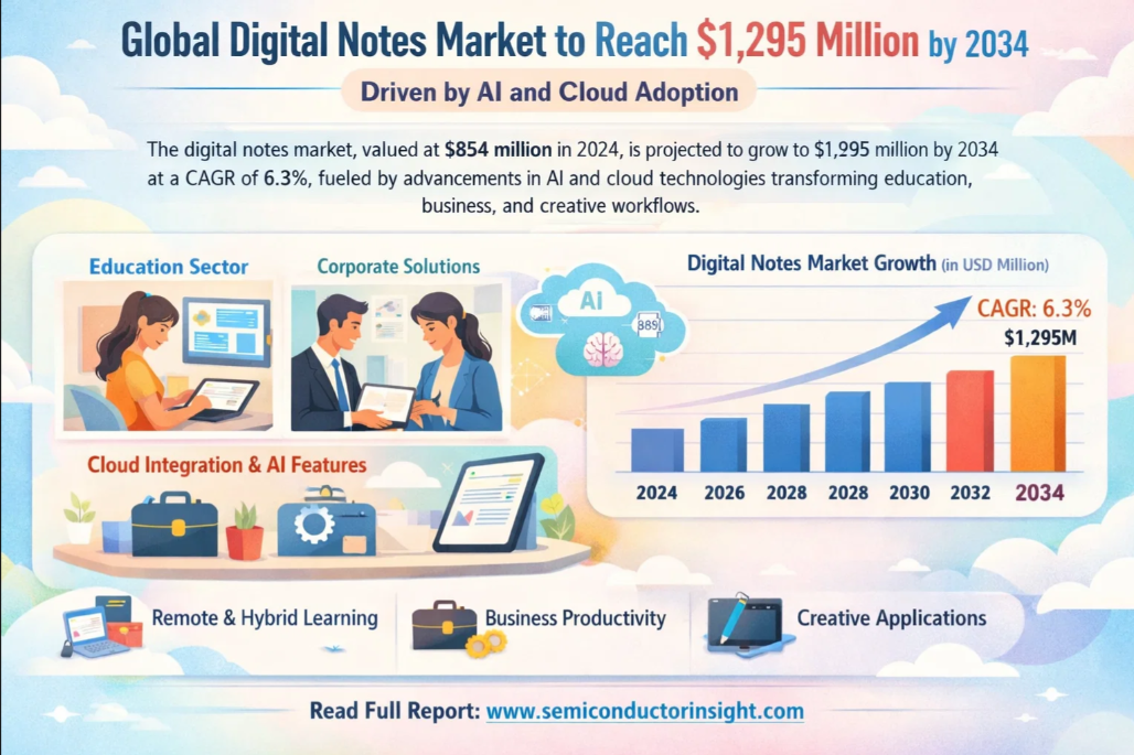 Global Digital Notes Market to Reach 1,295 Million by 2034 Driven by AI and Cloud Adoption