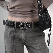 Silver buckle belts stand out because of their bold and detailed metal design. These buckles often include gothic crosses, floral patterns, or branded logos clearly displayed. The shiny silver hardware contrasts beautifully with dark leather for a strong visual appeal. Many fashion fans wear these belts to add personality to simple outfits. They pair well with denim, leather pants, or tailored trousers confidently. Silver buckle belts are among the most recognized Chrome Hearts accessories today.
