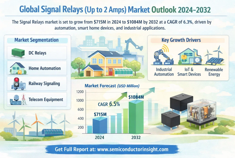 Global Signal Relays (Up to 2 Amps) Market, valued at a robust US$ 715 million in 2024, is on a trajectory of steady expansion, projected to reach US$ 1084 million by 2032. This growth, representing a compound annual growth rate (CAGR) of 6.3%, is detailed in a comprehensive new report published by Semiconductor Insight. The study highlights the indispensable role of these precision components in enabling reliable signal switching and isolation across a vast array of modern electronic systems, from industrial automation to consumer electronics.