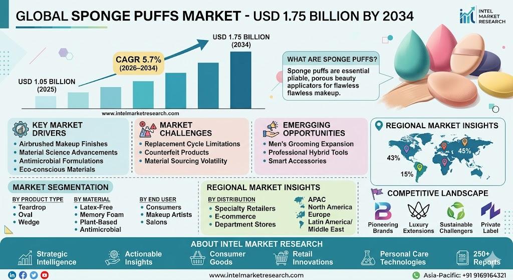 According to a new report from Intel Market Research, the global Sponge Puffs market was valued at USD 1.05 billion in 2025 and is projected to reach USD 1.75 billion by 2034, growing at a steady CAGR of 5.7% during the forecast period (2026–2034). This growth reflects evolving beauty routines, greater emphasis on makeup precision, and innovations in cosmetic tool materials and designs.