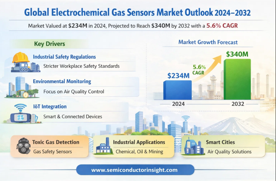 Global Electrochemical Gas Sensors Market, valued at US$ 234 million in 2024, is poised for steady expansion, projected to reach US$ 340 million by 2032. This growth, representing a compound annual growth rate (CAGR) of 5.6%, is detailed in a comprehensive new report published by Semiconductor Insight. The study underscores the indispensable role these precision detection devices play in safeguarding human health, ensuring industrial safety, and monitoring environmental quality across diverse sectors.