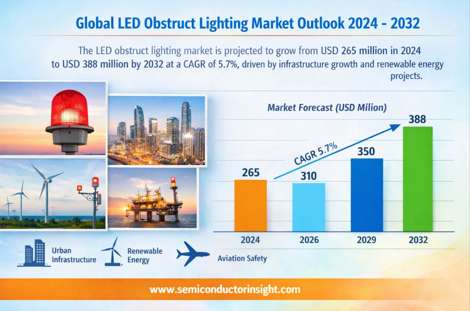 Global LED Obstruct Lighting Market, valued at US$ 265 million in 2024, is poised for steady expansion, projected to reach US$ 388 million by 2032. This growth, representing a compound annual growth rate (CAGR) of 5.7%, is detailed in a comprehensive new report published by Semiconductor Insight. The study underscores the critical role of these specialized aviation safety devices in ensuring the visibility of tall structures, thereby preventing collisions and enhancing airspace safety globally.