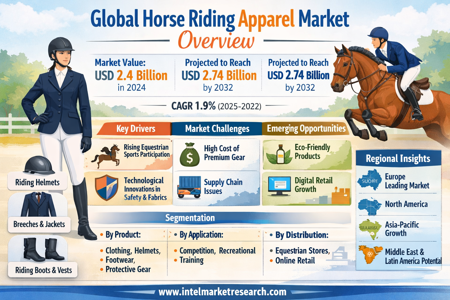According to a new report from Intel Market Research, the global horse riding apparel market was valued at USD 2.4 billion in 2024 and is projected to reach USD 2.74 billion by 2032, growing at a CAGR of 1.9% during the forecast period (2025–2032). This steady growth is fueled by increasing global participation in equestrian sports, heightened emphasis on rider safety standards, and continuous innovation in technical fabrics that enhance performance and comfort.
