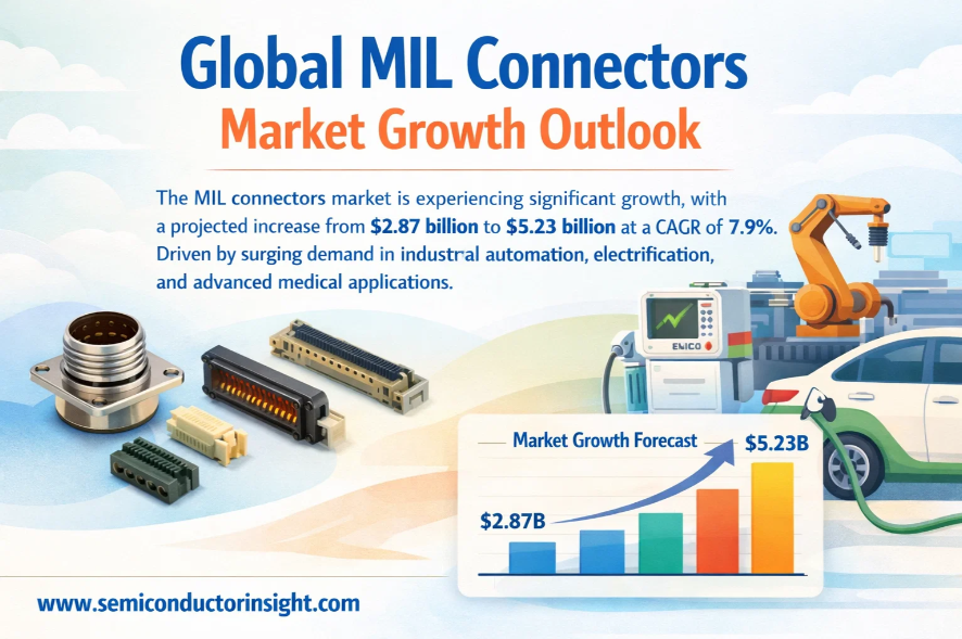 Global MIL Connectors Market, valued at US$ 2.87 billion in 2024, is poised for substantial growth, projected to reach US$ 5.23 billion by 2032. This expansion, representing a compound annual growth rate (CAGR) of 7.9%, is detailed in a comprehensive new report published by Semiconductor Insight. The study underscores the indispensable role these high-reliability interconnects play in enabling robust signal and power transmission across demanding applications, from industrial automation to advanced medical equipment.