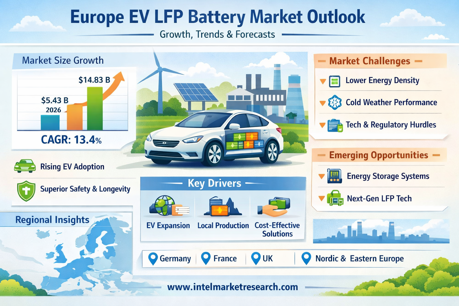 According to a new report from Intel Market Research, the Europe EV LFP Battery Market was valued at USD 4.67 billion in 2025 and is projected to grow from USD 5.43 billion in 2026 to USD 14.83 billion by 2034, growing at a robust CAGR of 13.4% during the forecast period (2026–2034). This growth is propelled by accelerating electric vehicle adoption across European countries, stringent EU safety regulations favoring stable chemistries like LFP, and automakers' strategic focus on cost-effective battery solutions for mass-market vehicles.
