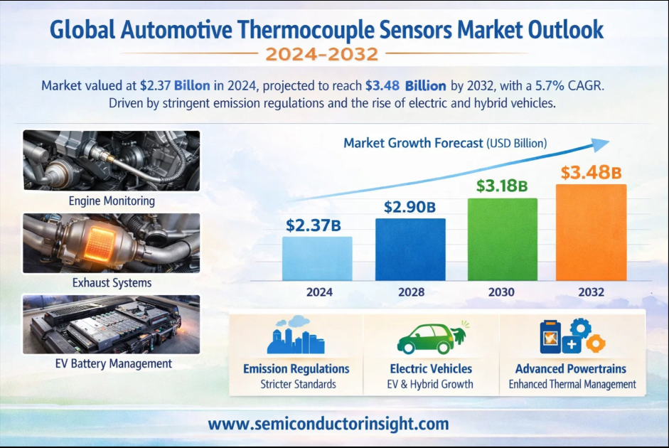Global Automotive Thermocouple Sensors Market, valued at a robust US$ 2.37 billion in 2024, is on a trajectory of steady expansion, projected to reach US$ 3.48 billion by 2032. This growth, representing a compound annual growth rate (CAGR) of 5.7%, is detailed in a comprehensive new report published by Semiconductor Insight. The study highlights the indispensable role these precision temperature measurement devices play in enhancing vehicle performance, ensuring emission compliance, and improving overall automotive safety and efficiency.