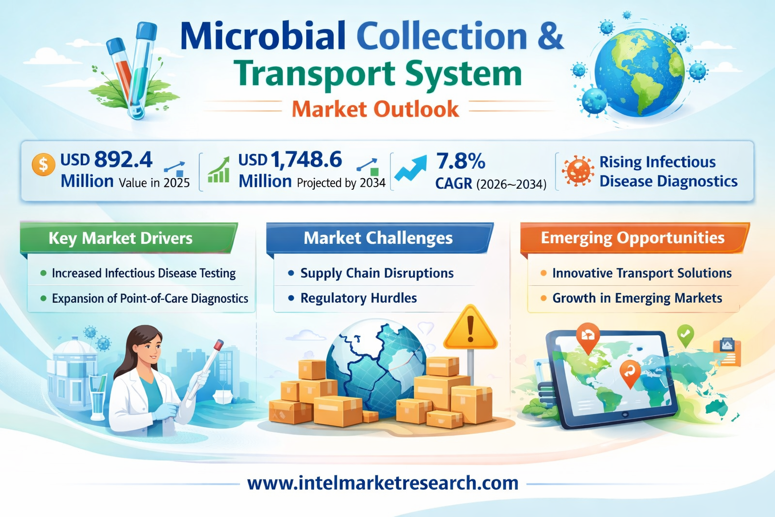 According to a new report from Intel Market Research, the global Microbial Collection and Transport System market was valued at USD 892.4 million in 2025 and is projected to reach USD 1,748.6 million by 2034, exhibiting a CAGR of 7.8% during the forecast period (2026–2034). This growth is propelled by the rising global burden of infectious diseases, expanding diagnostic infrastructure, and heightened awareness around infection control practices - particularly in the wake of the COVID-19 pandemic, which significantly accelerated demand for robust specimen collection and transport solutions.