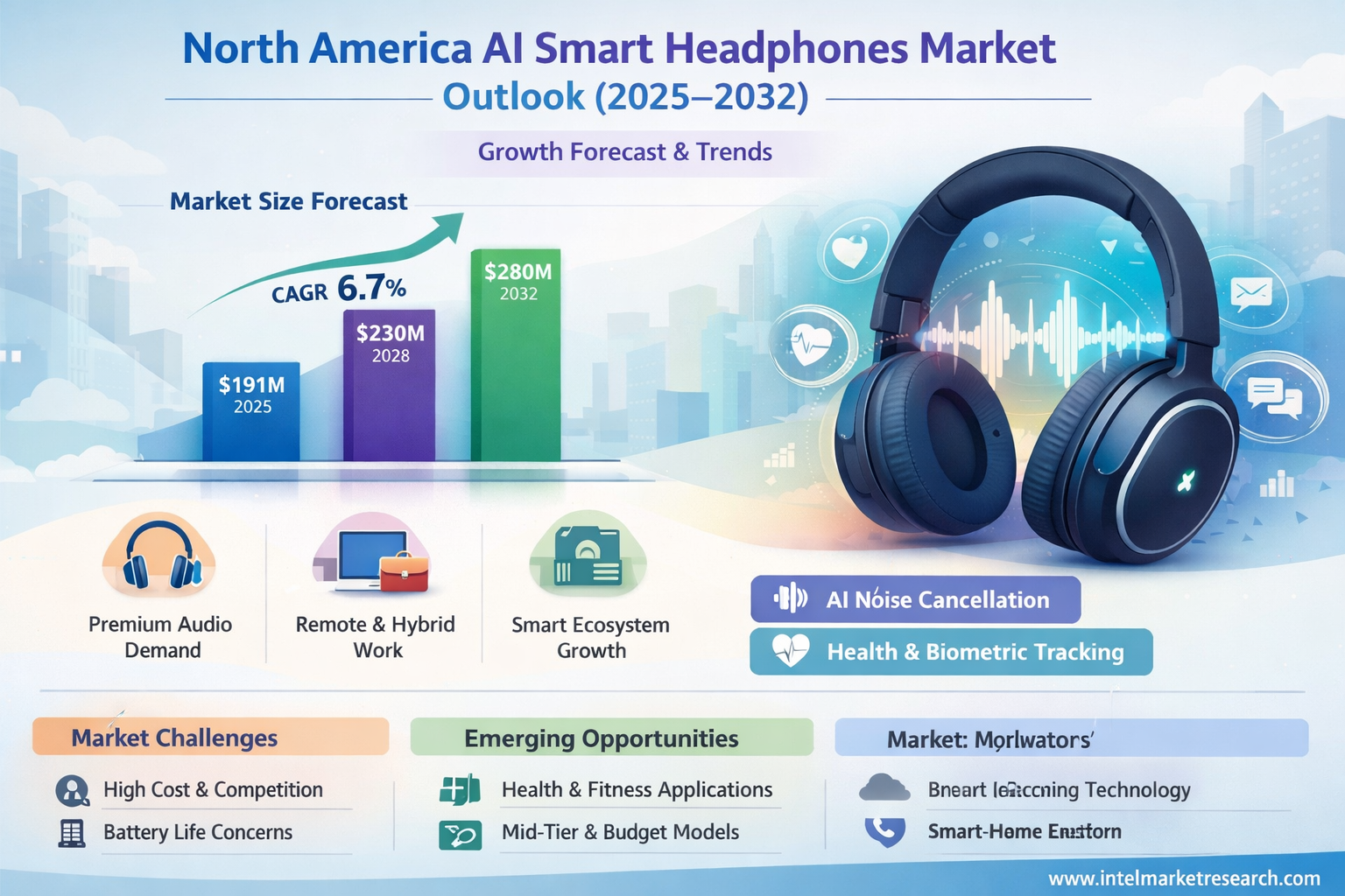 According to a new report from Intel Market Research, the North America AI Smart Headphones market was valued at USD 179 million in 2024 and is projected to grow from USD 191 million in 2025 to USD 280 million by 2032, exhibiting a CAGR of 6.7% during the forecast period (2025–2032). This growth is propelled by strong consumer demand for premium audio experiences, widespread remote work adoption, high penetration of smart ecosystems, and advancements in AI-driven features such as superior noise cancellation and biometric sensing.