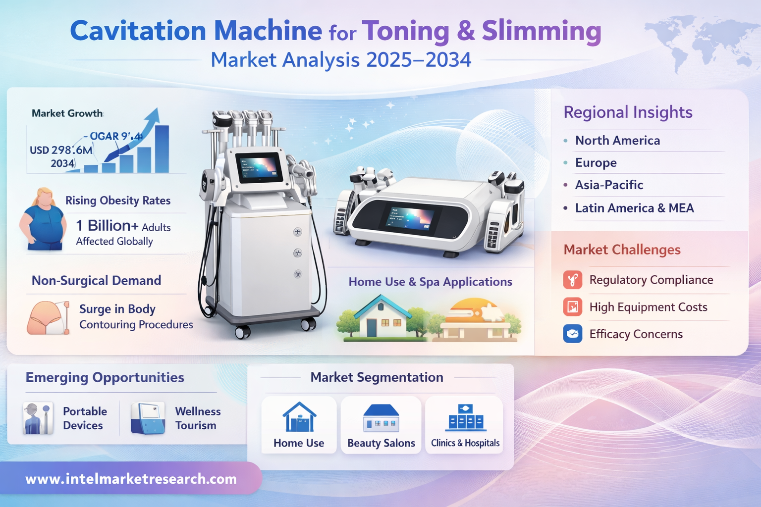 According to a new report from Intel Market Research, the global Cavitation Machine for Toning & Slimming market was valued at USD 245.8 million in 2025 and is projected to grow from USD 267.3 million in 2026 to reach USD 598.6 million by 2034, exhibiting a CAGR of 9.4% during the forecast period (2025–2034). This growth is propelled by rising global obesity rates, increasing consumer preference for non-surgical body contouring solutions, and growing awareness of aesthetic wellness.