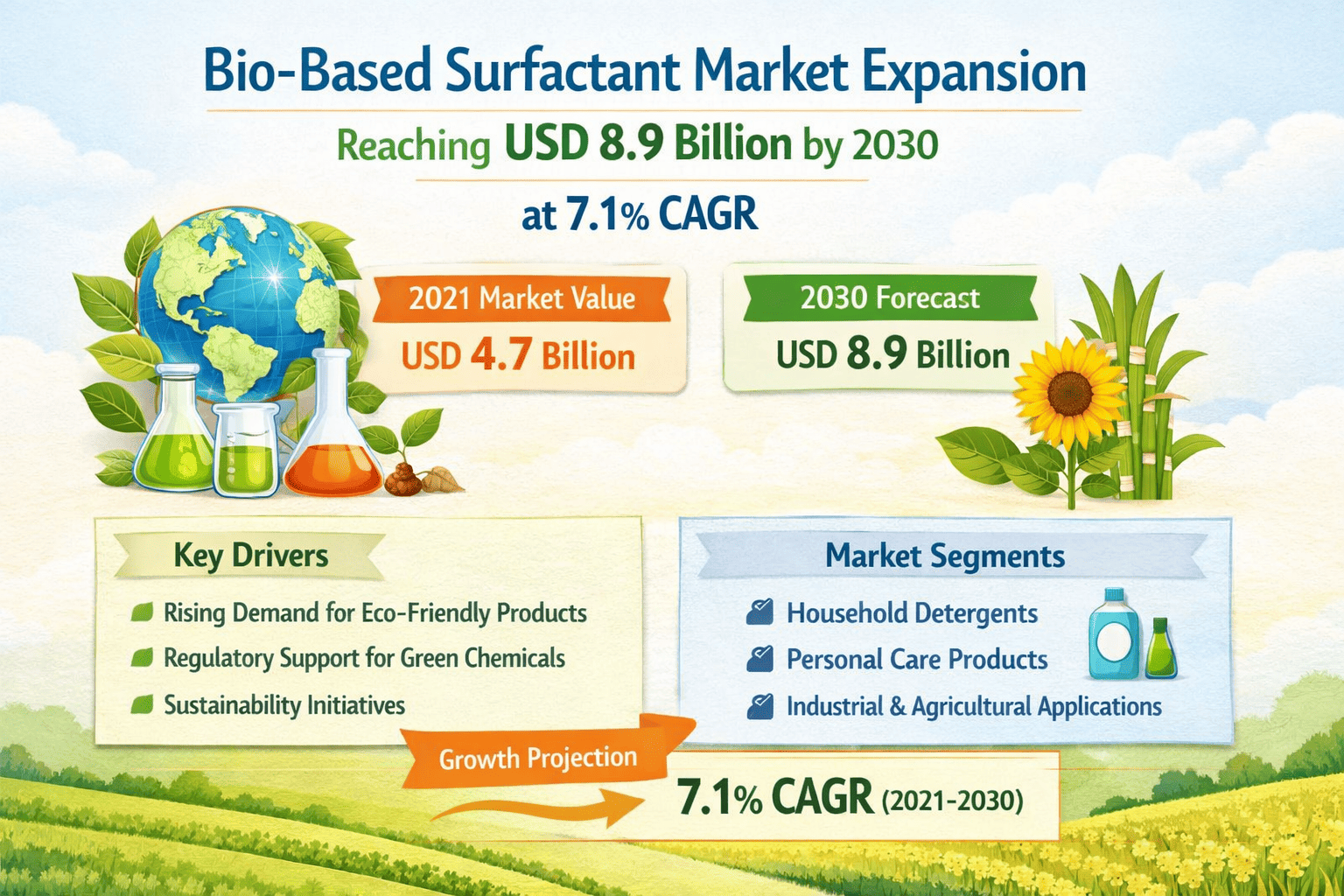 Bio-Based Surfactant Market Expansion: Reaching USD 8.9 Billion by 2030 at 7.1% CAGR