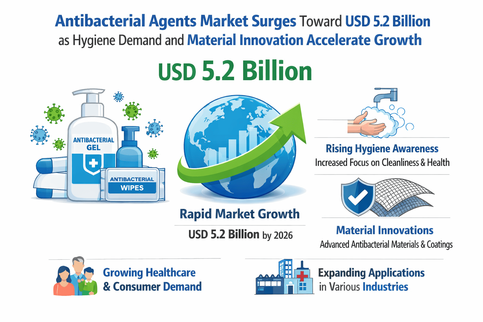 Antibacterial Agents Market Surges Toward USD 5.2 Billion as Hygiene Demand and Material Innovation Accelerate Growth