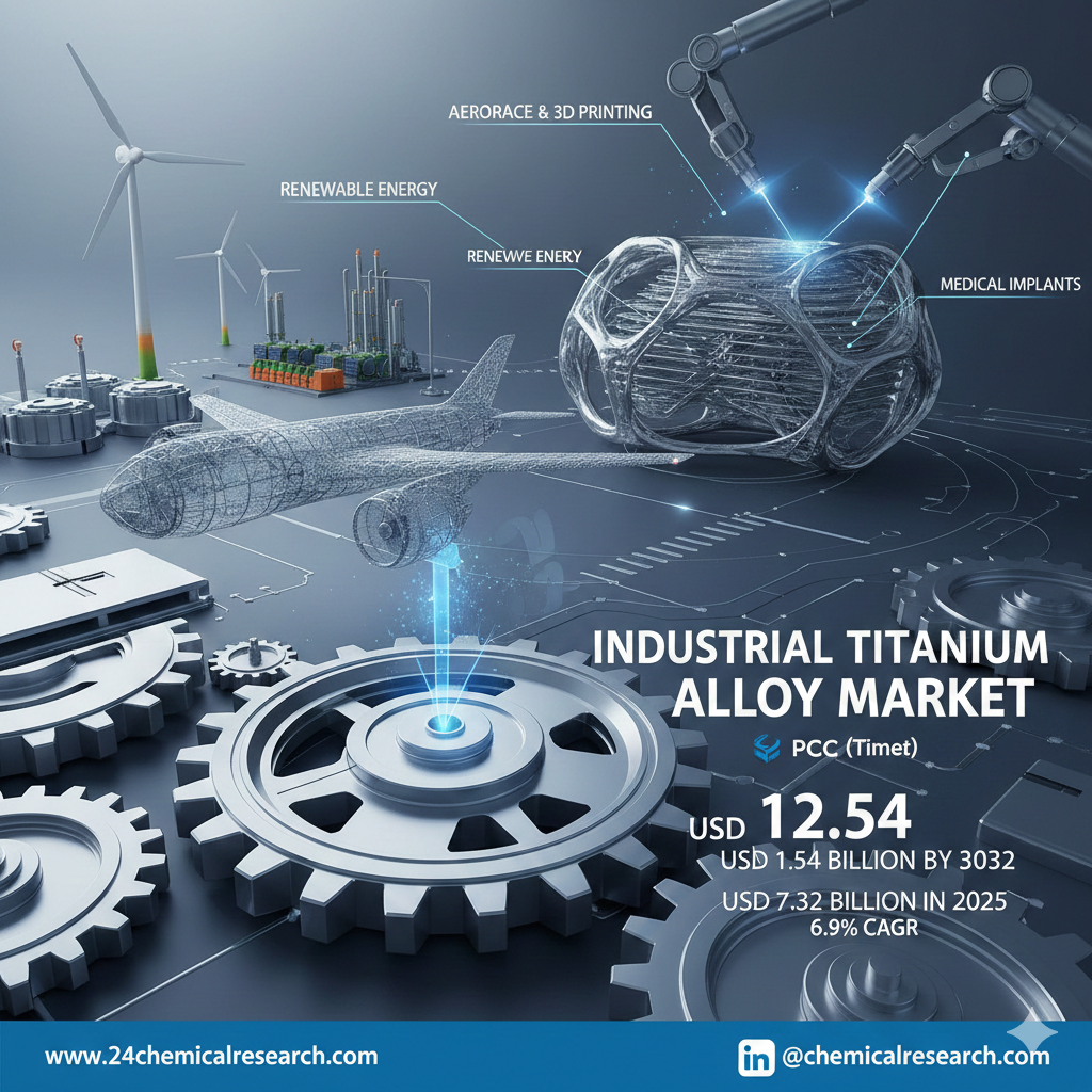 Industrial Titanium Alloy Market to Hit USD 12.54 Billion by 2032 – 6.9% CAGR Driven by Aerospace & 3D Printing Surge
