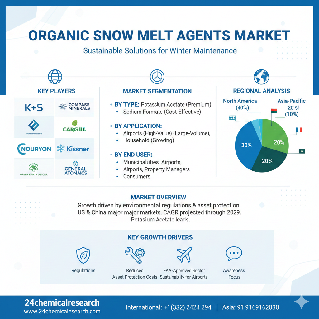 The Organic Snow Melt Agent market is evolving with strong regulatory tailwinds and a clear shift toward sustainable infrastructure management. While higher cost compared to rock salt remains a barrier for widespread road adoption, the compelling value proposition of asset preservation and environmental compliance ensures solid growth. The market's future will be shaped by continued regulatory pressure, technological improvements in application efficiency, and the potential for cost reductions through scaled production and innovation. Leaders will be those who successfully integrate product performance with environmental stewardship and supply chain reliability.