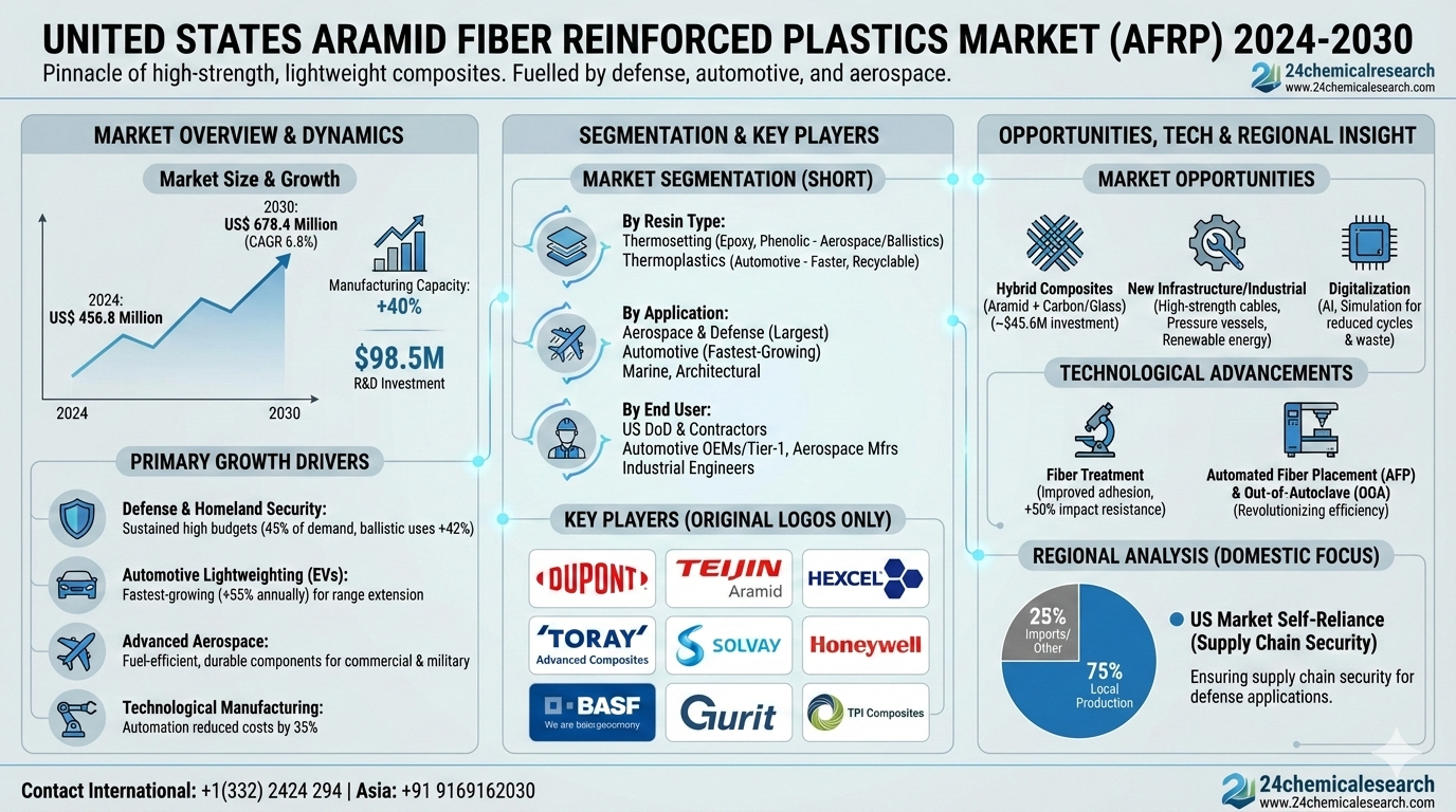Aramid Fiber Reinforced Plastics (AFRP) represent the pinnacle of high-strength, lightweight composite materials, combining legendary aramid fibers (like Kevlar®) with polymer matrices. Renowned for exceptional impact resistance, tensile strength, and damage tolerance, these composites are mission-critical where failure is not an option. In the United States, the market is fueled by unparalleled defense expenditures, the automotive shift to electrification, and a relentless pursuit of performance across aerospace and industrial sectors, underpinning national security and technological competitiveness.
