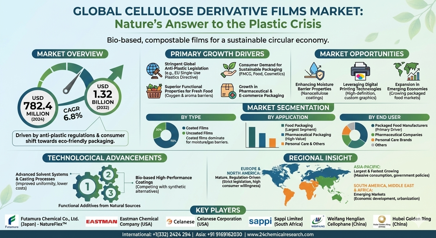 Cellulose Derivative Films Market to Reach USD 1.32 Billion by 2032, Growing at 6.8% CAGR
