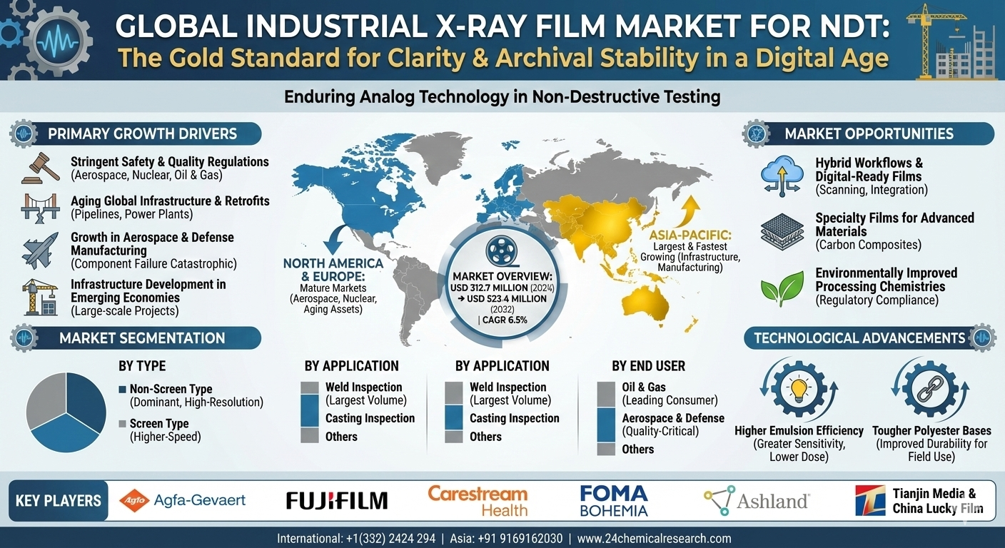 ● Aging Global Infrastructure & Retrofits: The extensive need to inspect and maintain aging pipelines, power plants, and bridges generates consistent, recurring demand for film-based inspections.