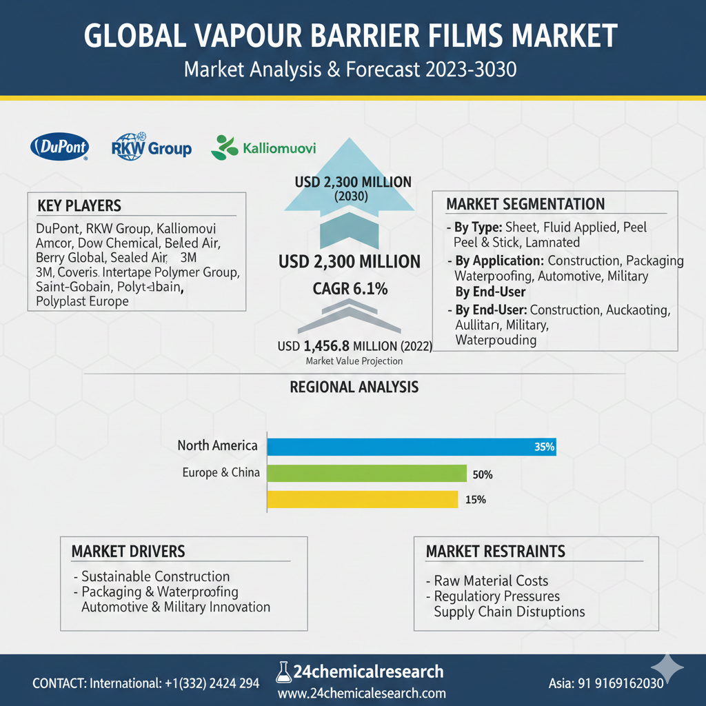 Vapour Barrier Films Market Size USD 1,456.8 Million in 2022 | Forecast to USD 2,300 Million by 2030 at 6.1% CAGR Driven by Sustainable Construction and Packaging Growth