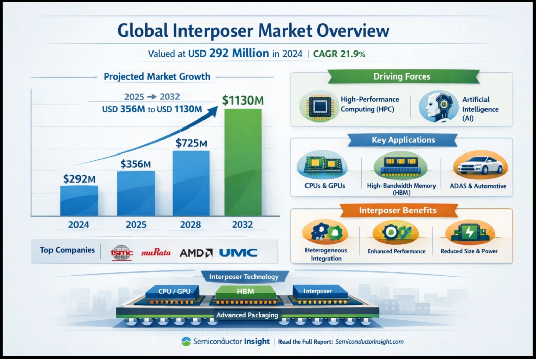 Global Interposer Market to Reach $1.13B by 2032 Driven by AI, HPC, and Advanced Semiconductor Packaging