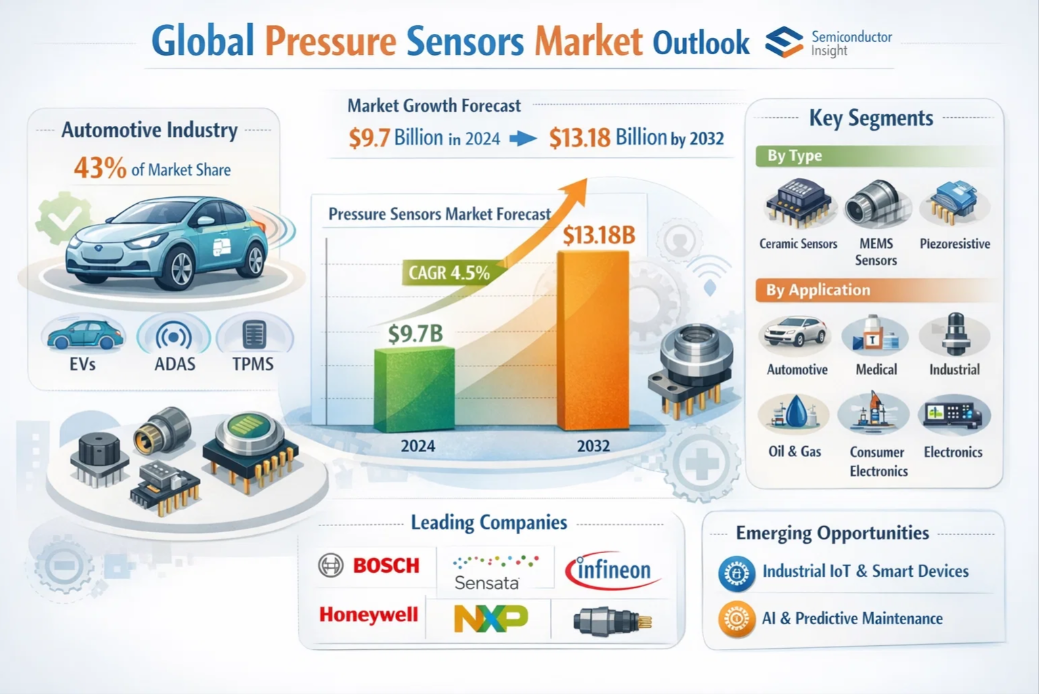 Global Pressure Sensors Market to Reach $13.18B by 2032 Driven by Automotive & IIoT Demand